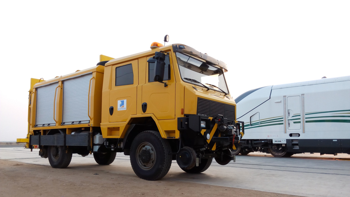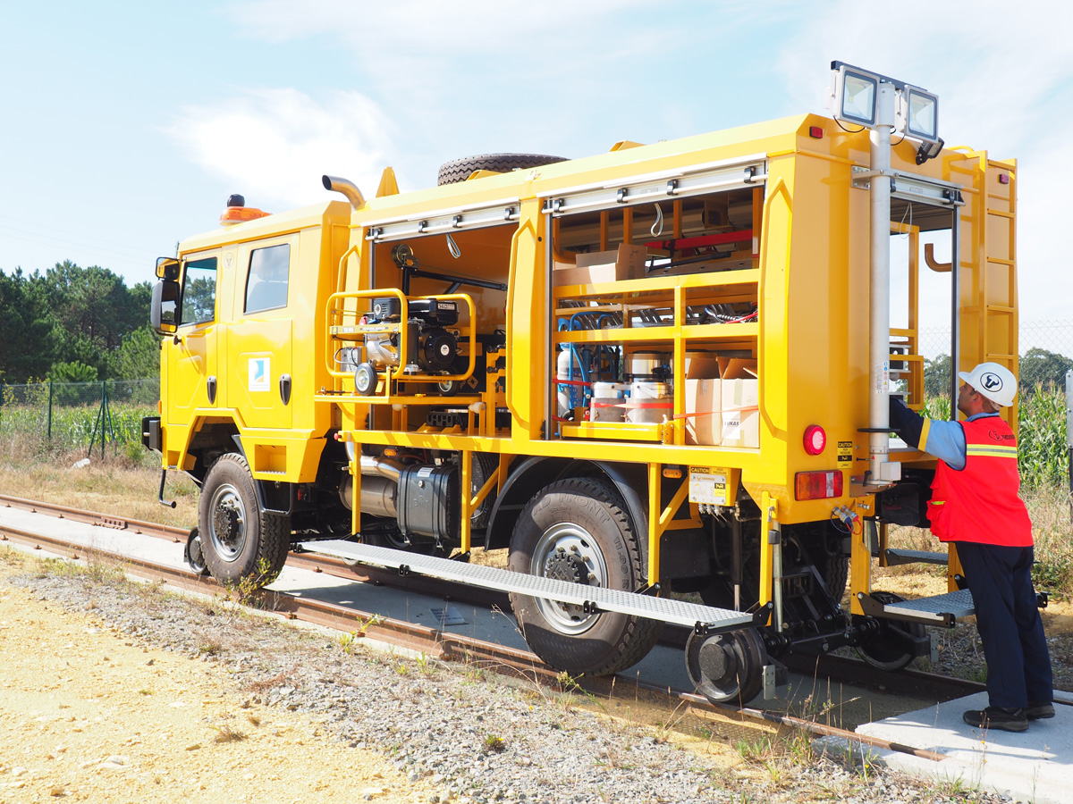 T-RAIL RV can be configured as rescue vehicle equipped with hydraulic re-railing equipment for de-railed cars. It can be also equipped with rescue and fire-fighting equipment.